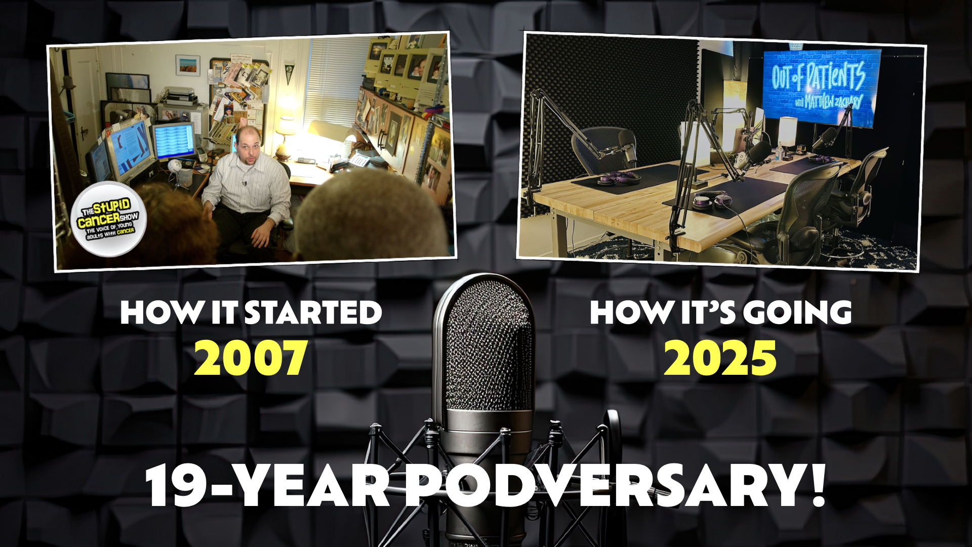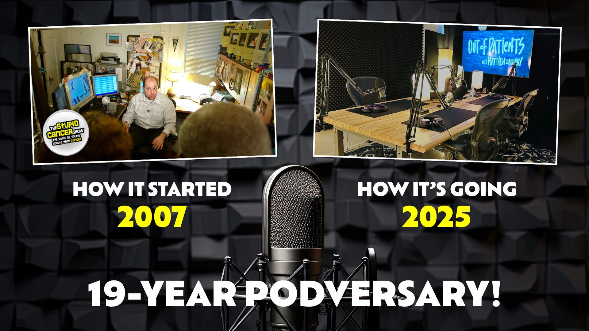 On May 28, 2007, I hit "publish" on the very first episode of The Stupid Cancer Show. No script. No playbook. Just an 11-year brain cancer survivor yelling into the rotary internet from a Gen 1 Blue Snowball USB Condenser Mic.