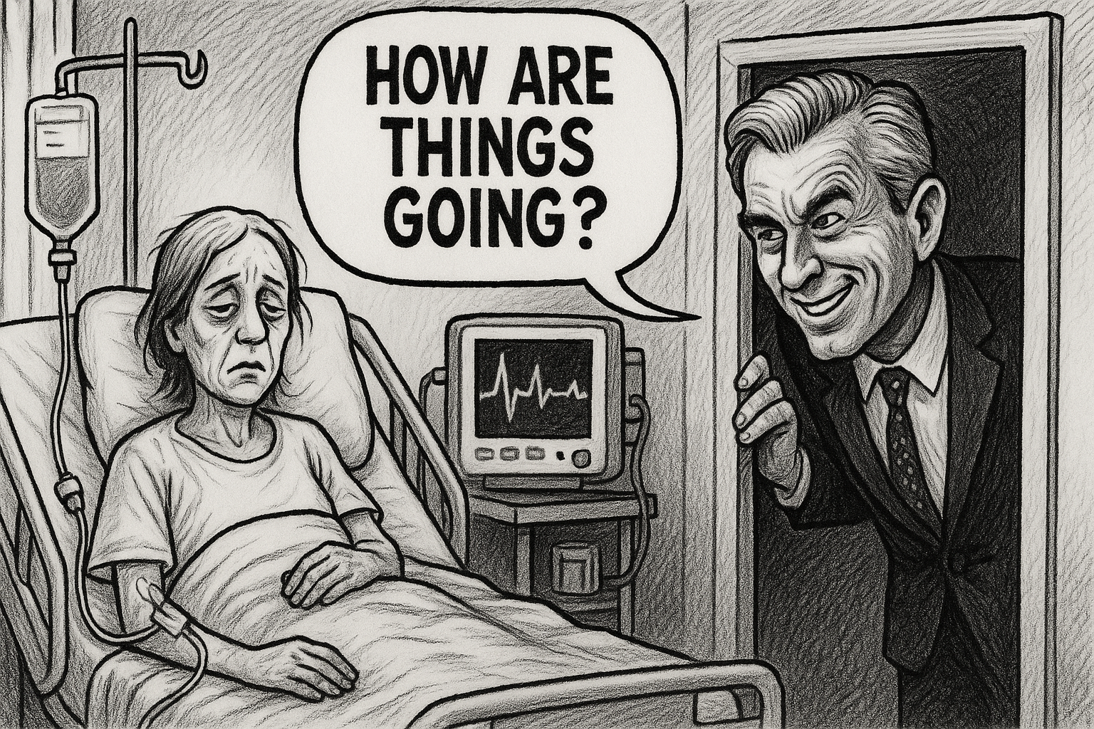 Tatiana writes in The New Yorker about watching from her hospital bed as Bobby dismantles the system keeping her alive. Her husband, George, a Columbia researcher, might lose his job. Their insurance? Who knows.